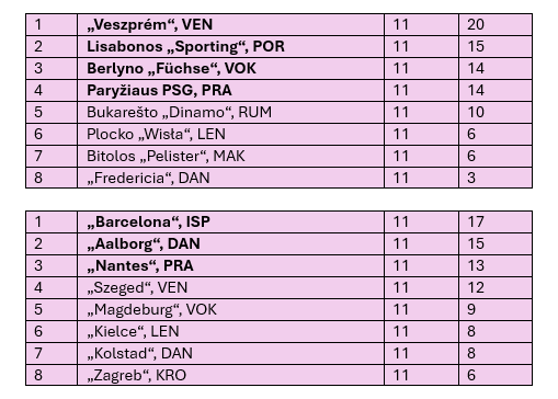 Vesprėmo komanda dar labiau įsitvirtino A grupės pirmojoje vietoje ir viena ranka jau laiko tiesioginį kelialapį į ketvirtfinalį. „Veszprém“ sąskaitoje yra 20 taškų, o dėl antrosios vietos kovoja „Sporting“ (15), „Füchse“ ir PSG (14).