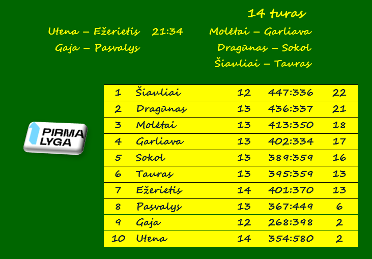 Penktadienį prasidėjo Lietuvos vyrų rankinio pirmosios lygos 17-asis turas. Pirmosiose rungtynėse įtampos nebuvo – Zarasų „Ežerietis išvykoje nesunkiai nugalėjo „Uteną“ 34:21 (16:11).