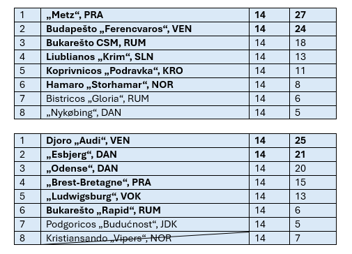 „Storhamar“ kelialapis atiteko paprasčiau. Hamaro komanda paskutiniajame ture išvykoje pralaimėjo „Metz“ ekipai 20:24. Tačiau Hamaro ekipą aplenkti galėjusi Bistricos „Gloria“ irgi nieko nepešė – svečiuose nusileido Bukarešto CSM klubui 23:32.