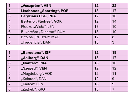 „Sporting“ – „Fredericia“ 32:29 (15:16). M.Costa 12, F.Costa 9 / Bisgaardas 10.