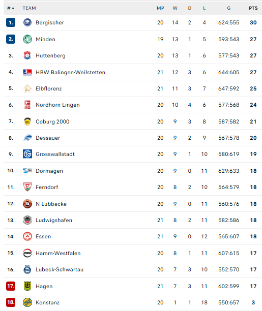 Pirmauja: „Bergische“ – 30, „Minden“, „Hüttenberg“, „Balingen“ – po 27, „Elbflorenz“ – 25.