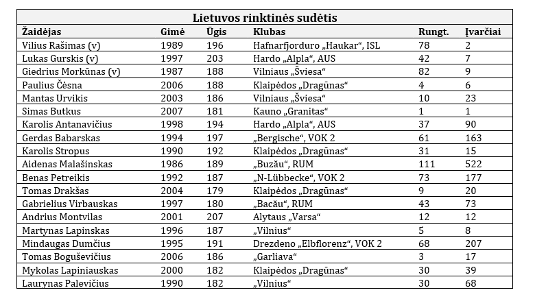 Treneris džiaugėsi, kad į rinktinę atvyks visi geriausi Lietuvos rankininkai. Optimizmo prideda tai, kad jie sėkmingai žaidžia klubuose: Karolis Antanavičius yra vienas iš Austrijos lygoje pirmaujančios Hardo „Alpla“ vedlių, Gabrielius Virbauskas iš „Bacău“ yra rezultatyviausias Rumunijos lygos rankininkas, „Buzău“ atakų organizatorius Aidenas Malašinskas pirmauja Rumunijos lygoje pagal rezultatyvius perdavimus, Gerdas Babarskas padeda Vokietijos antrosios lygos lyderei „Bergische“ komandai kovoti dėl kelialapio į pirmąją bundeslygą, o vartininkas Vilius Rašimas su Hafnarfjorduro „Haukar“ ekipa pasiekė Europos taurės ketvirtfinalį.