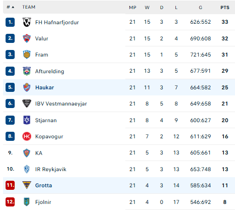 „Haukar“ nelauktai prarado tašką žaisdamas su viena iš autsaiderių „Grotta“. Tiesa, šios rungtynės jau neturėjo įtakos „Haukar“ galutinei vietai reguliariajame sezone, iki kurio pabaigos liko vienas turas. „Haukar“ tikrai užims penktąją vietą.