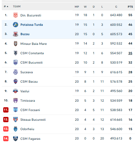 Pirmauja: „Dinamo“ – 55, „Potaissa“ – 46, „Buzău“ – 45, „Minaur“ – 44, „Constanța“ – 35, … „Bacău“ – 25.