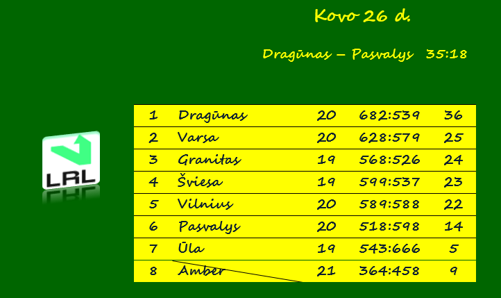 Klaipėdos „Dragūnas“ – Pasvalio „Pieno Žvaigždės“ 35:18 (21:9).