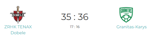 Duobelės „Tenax“ – Kauno „Granitas“ 35:36 (17:16), Pirmosios rungtynės 33:25.