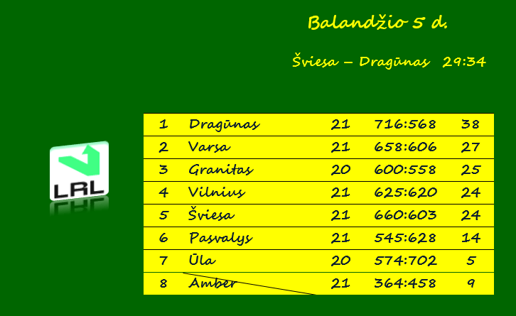 Pirmąją vietą jau seniai užsitikrinusiam „Dragūnui“ šios rungtynės nieko nelėmė. Tuo tarpu „Šviesa“ dar turėjo nedidelę galimybę pakilti į trečiąją vietą. Tačiau pralaimėjimas lyderiams lėmė, kad „Šviesa“ reguliarųjį sezoną baigė penktojoje vietoje ir ketvirtfinalyje kovos su kita sostinės komanda „Vilniumi“.