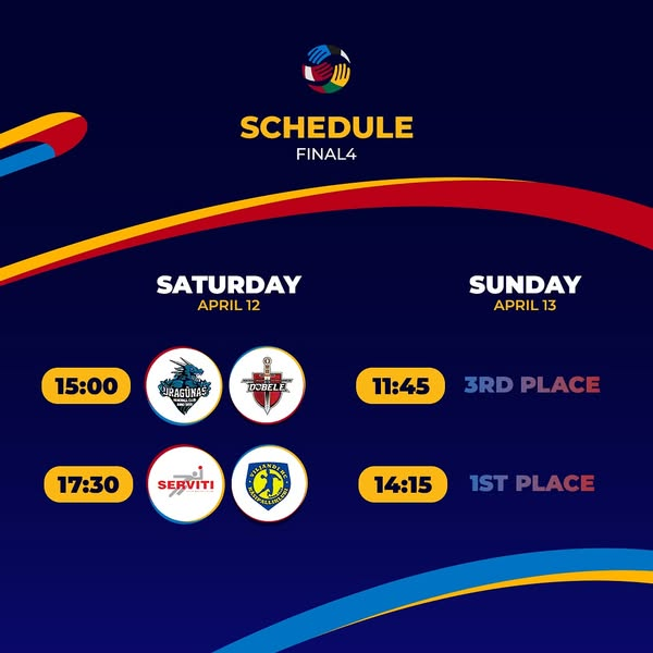 Šeštadienį pusfinalio rungtynėse susitiks „Dragūnas“ – „Tenax“ ir „Serviti“ – „Viljandi“. Sekmadienį įvyks finalo rungtynės ir rungtynės dėl trečiosios vietos.