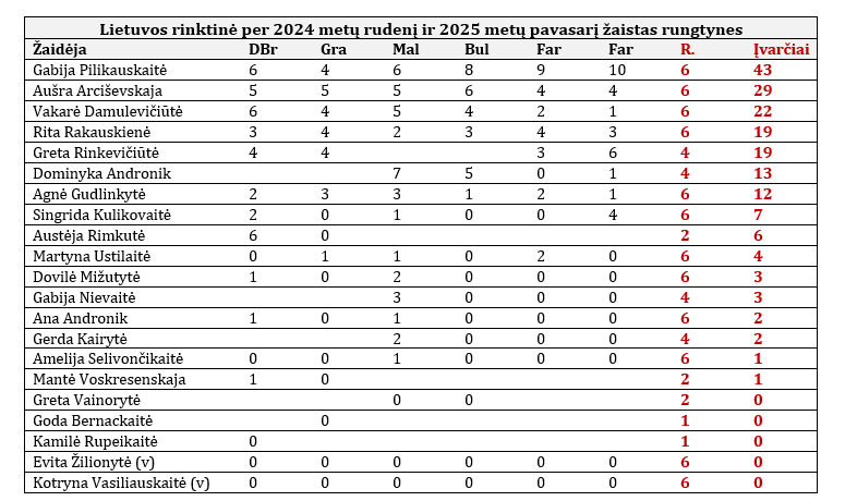 „Baigėme rinktinės sezoną. Žaidėme šešerias rungtynes ir iškovojome penkias pergales. Rezultatas – nuostabus. Deja, pralaimėjome lemiamą dvikovą dėl teisės žaisti pasaulio pirmenybėse. Nepaisant to, didžiuojuosi rankininkėmis.“