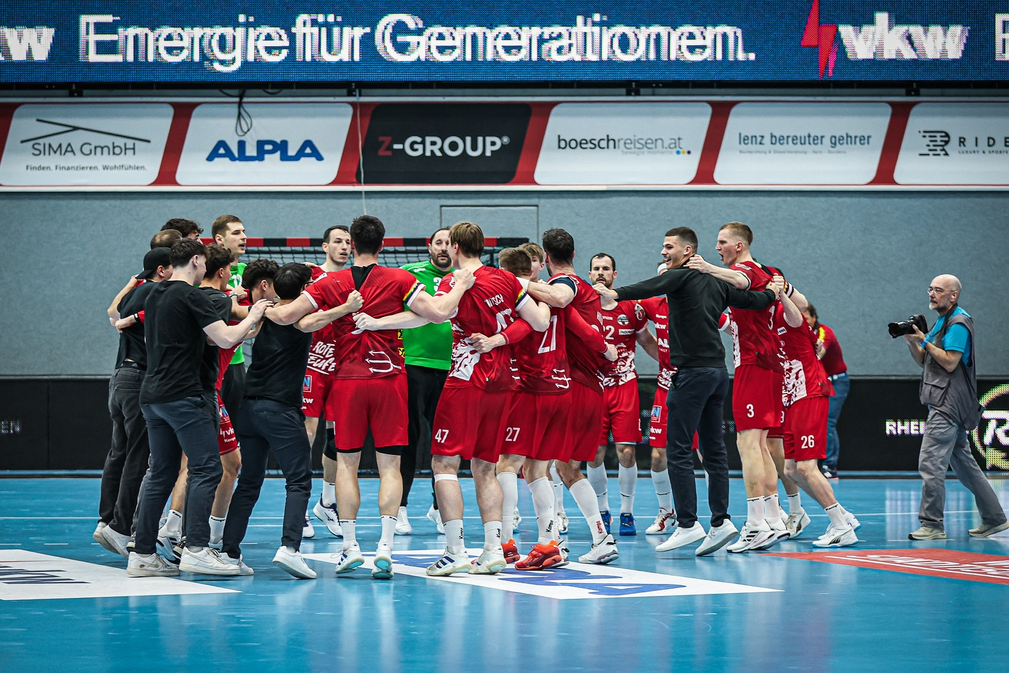 Hardo komanda pirmosiose ketvirtfinalio rungtynėse vos neprisižaidė. „Alpla“ antrajame kėlinyje pirmavo septynių įvarčių skirtumu 20:13, bet tada praleido penkis įvarčius paeiliui ir padėtis įkaito. Padėtis dar labiau pasunkėjo, kai 54-ąją min. raudona kortele buvo nubaustas Karolis Antanavičius, tačiau vieną iš lyderių praradusi „Alpla“ viso pranašumo neišbarstė.