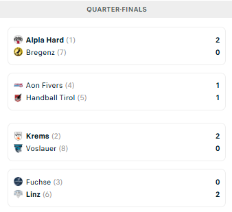 „Alpla“ pusfinalio varžovai dar nepaaiškėjo. Hardo komanda kitame etape susitiks su Vienos „Fivers“ arba Švaco „Tirol“, kurių ketvirtfinalio dvikovoje rezultatas po dvejų rungtynių yra lygus 1:1.