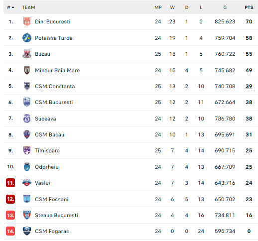 „Buzău“ nedideliu skirtumu, bet gana įtikinamai įveikė CSM komandą ir dar labiau įsitvirtino trečiojoje vietoje. Nors tą pačią dieną pralaimėjo antrojoje vietoje esanti „Potaissa“, nusileidusi lyderiui „Dinamo“ klubui, „Buzău“ galimybė pakilti vienu laipteliu aukščiau – labai nedidelės.