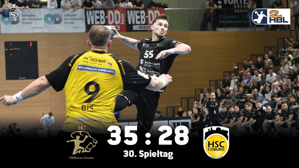 Nors „Elbflorenz“ liko tik nedidelės aritmetinės galimybės pakilti į antrąją vietą, Drezdeno rankininkai nenuleidžia rankų ir bando gaudyti kelialapį į pirmąją bundeslygą. Penktadienį „Elbflorenz“, kuriame vėl buvo registruotas dėl nedidelės traumos trejas rungtynes praleidęs Mindaugas Dumčius, sutriuškino lentelės kaimyną „Coburg“ ir sumažino atsilikimą nuo antrąją vietą besidalijančių komandų.