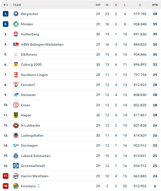 Galimybe įsitvirtinti antrojoje vietoje nepasinaudojo „Minden“, į kurį kitą sezoną pereis Karolis Antanavičius. Mindeno ekipa išbarstė keturių įvarčių pranašumą ir pralaimėjo pagrindinei varžovei Hiutenbergo komandai.