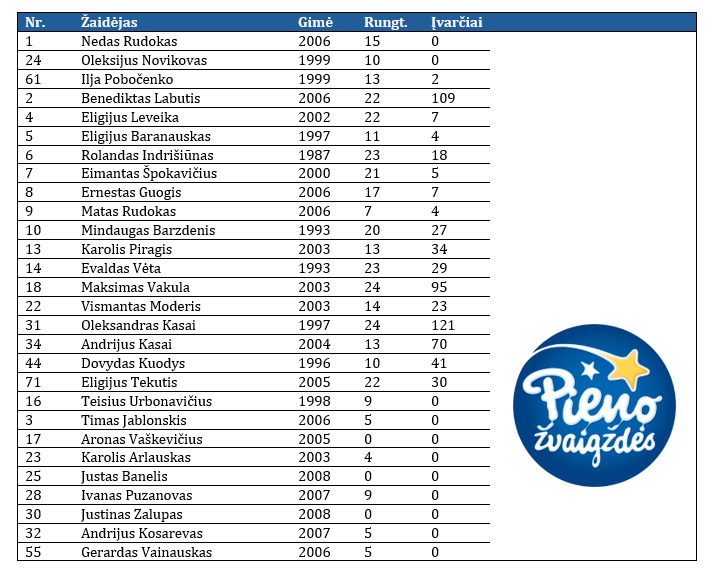 Keli senbuviai liko komandoje, o vyriausias „Pieno žvaigždžių“ rankininkas 38-erių Rolandas Indrišiūnas bei dukart jaunesnis 19-metis Eligijus Tekutis ir atsinaujinus sudėčiai yra gana svarbūs žaidėjai.