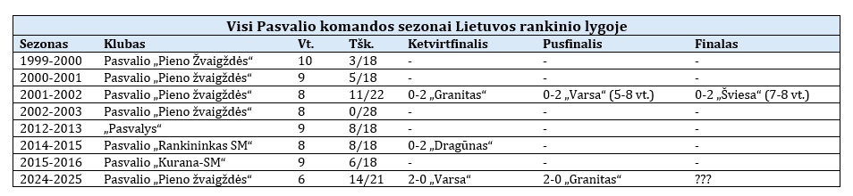Kai paaiškėjo, kad Pasvalio komanda galės žaisti aukščiausioje šalies rankinio pakopoje, sezonas jau buvo ant nosies. „Pieno žvaigždžių“ klubo vadovams reikėjo per labai trumpą laiką sustiprinti komandą, kad ji būtų konkurencinga aukštesniame lygyje. Juo labiau kad praėjusį sezoną Pasvalio ekipa net nebuvo antrosios pakopos vidutiniokė – 2024 metų pavasarį pirmojoje lygoje užėmė priešpaskutinę aštuntąją vietą.