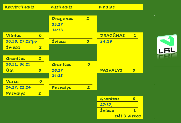 Pirmosiose didžiojo finalo rungtynėse Klaipėdos „Dragūnas“ nugalėjo Pasvalio „Pieno žvaigždes“ 34:19 (15:12). Didžiajame finale žaidžiama iki trijų pergalių.