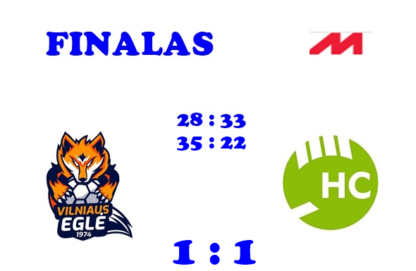 Sekmadienį antrosiose finalo rungtynėse reguliariojo sezono nugalėtoja Vilniaus „Eglė“ išvykoje įtikinamai įveikė čempionės vardą ginančią „Garliavą“ 35:22 (14:12) ir išlygino serijos iki trijų pergalių rezultatą 1:1. Trečiosios finalo rungtynės bus žaidžiamos ketvirtadienį (gegužės 22 d.) Vilniuje.
