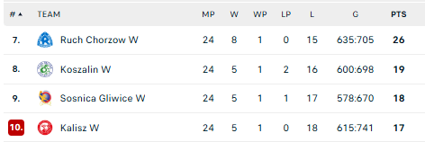 Lenkijos lygoje šį sezoną žaidė kita Lietuvos rinktinės rankininkė Aušra Arciševskaja. Ji atstovavo šeštąją vietą užėmusiai Piotrkuvo „Piotrcovia“ komandai, bet nuo kito sezono vilkės trečiąją vietą užėmusios „Kobierzyce“ aprangą.