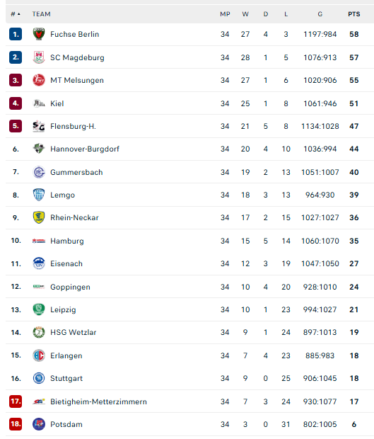 Štutgarto komandai padėjo „Magdeburg“ rankininkai, kuri išvykoje sutriuškino „Bietigheim“ ekipą. Būtent „Bietigheim“ nukrito į 17-ąją vietą ir, kartu su paskutiniąją 18-ąją vietą užėmusiu „Potsdam“ iškris į antrąją bundeslygą.