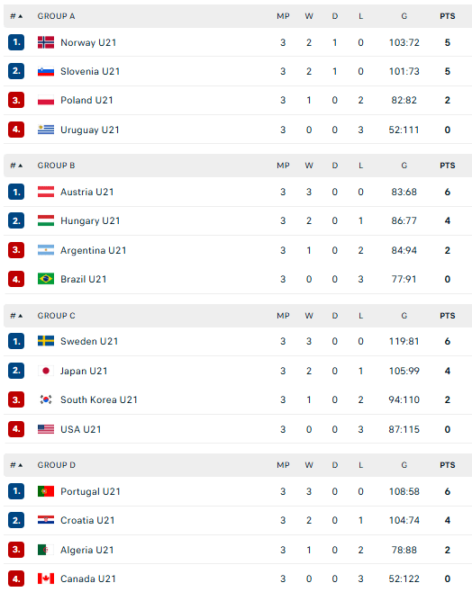 Lenkijos rinktinė nusileido Norvegijos ir Slovėnijos komandoms, Serbijos vaikinai į kitą etapą praleido Vokietijos ir Šveicarijos bendraamžius, o europietiškoje grupėje dvi pirmąsias vietas užėmė Farerų Salų ir Rumunijos rinktinės, aplenkusios Islandijos ir Šiaurės Makedonijos rankininkus.