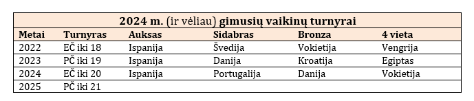 2004 metais gimusių rankininkų turnyruose iki šiol viešpatavo Ispanijos vaikinai. Jie 2022 metais tapo 18-mečių Europos čempionais, po metų – 19-mečių pasaulio čempionais, pernai – 20-mečių Europos čempionais.