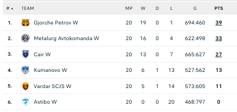 Šiaurės Makedonijos lygos lentelė