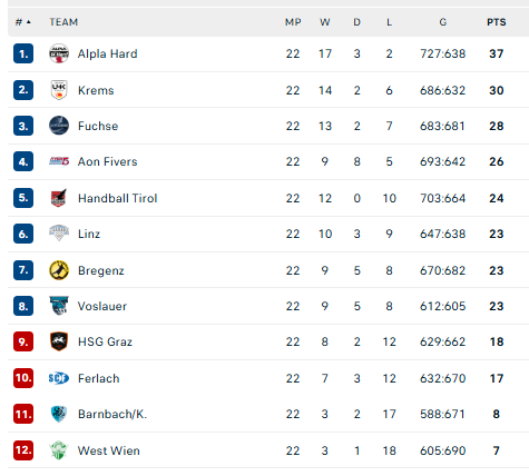 Austrijos lygos lentelė