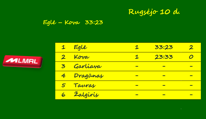 | Įmesti įvarčiai | 33 – Eglė (su Kova) | 33 – Eglė (su Kova) |