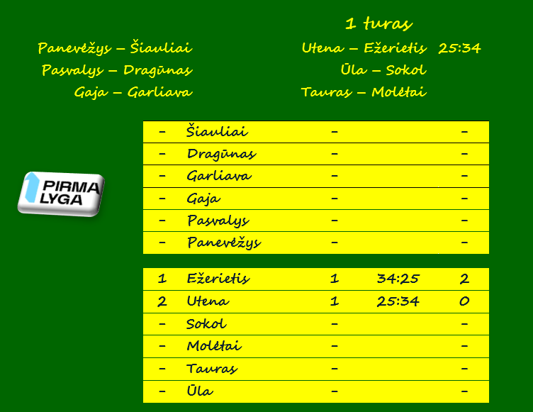 Lietuvos vyrų rankinio pirmosios lygos vėliava penktadienį buvo pakelta Utenoje. Šiame mieste įvyko pirmosios naujo sezono rungtynės, kuriose susitiko dvi Aukštaitijos komandos. Jėgos buvo nelygios – nors Zarasų „Ežerietis“ žaidė išvykoje, nesunkiai nugalėjo „Uteną“ 34:25 (19:9).