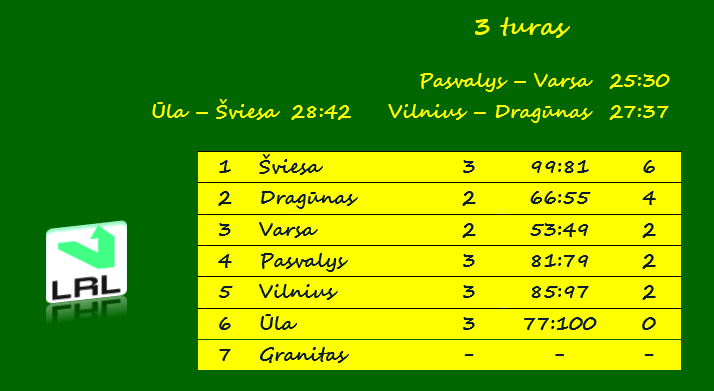 „Šviesa“ nugalėjo Varėnos „Ūlą“ 42:28 (20:10), „Dragūnas“ – „Vilnių“ 37:27 (19:12), „Varsa“ – Pasvalio „Pieno žvaigždes“ 30:25 (15:9).