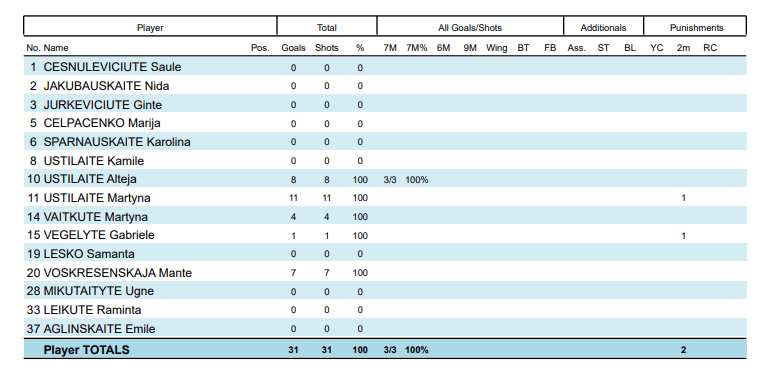 „Garliava“: M.Ustilaitė 11, A.Ustilaitė 8, Voskresenskaja 7, Vaitkutė 4, Vėgėlytė 1.