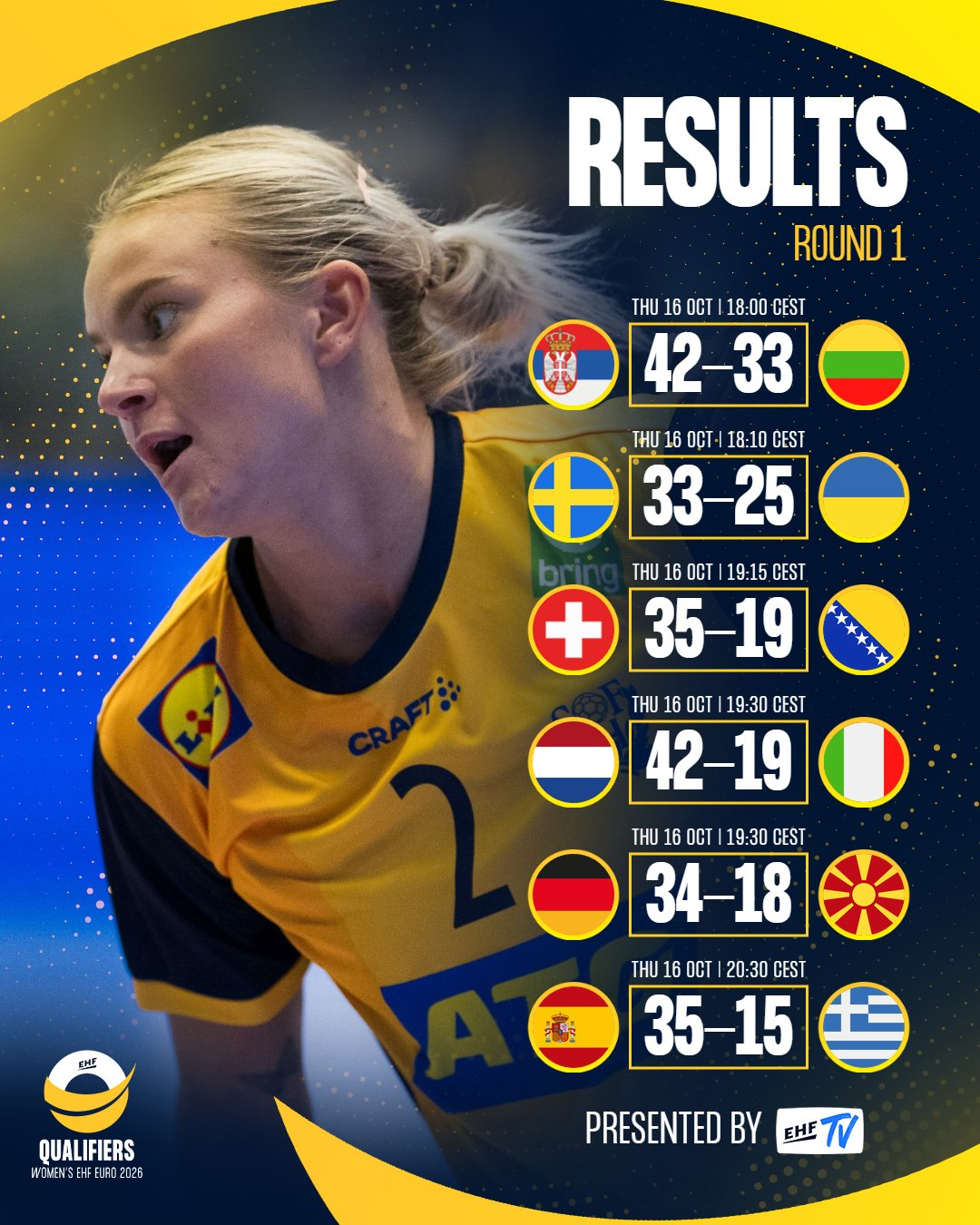 Net keturios komandos – Ispanijos, Nyderlandų, Vokietijos ir Šveicarijos rinktinės – nugalėjo didesniu nei 15 įvarčių skirtumu, o mažiausias pranašumas pasiektas dvejose 5-osios grupės rungtynėse. 5-ojoje grupėje Serbija įveikė Lietuvą 42:33, Švedija – Ukrainą 33:25.