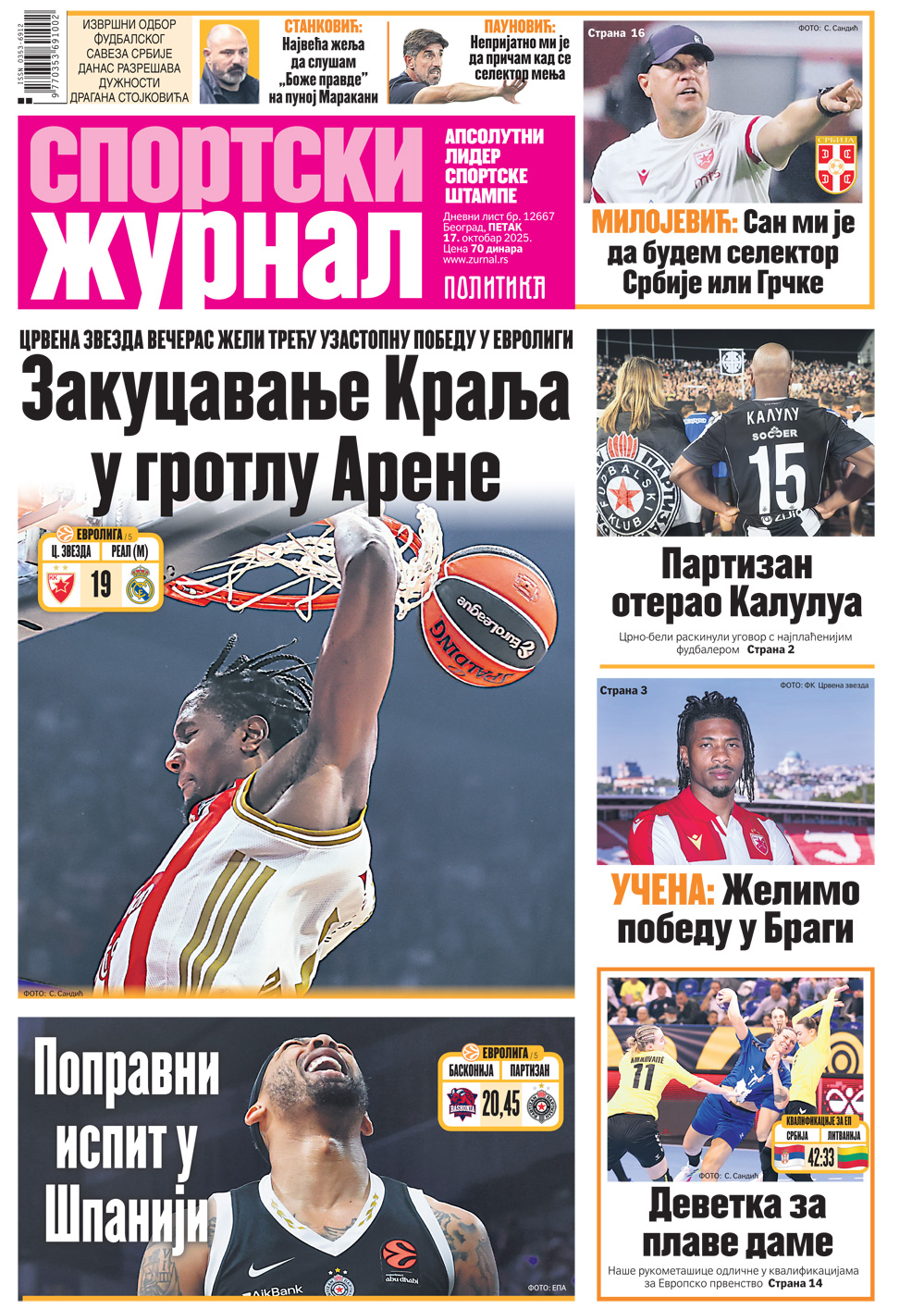 Nors vienintelio Serbijos sporto dienraščio „Sportski žurnal“ viršelyje rankiniui vietos skiriama nedažnai, penktadienį Serbijos moterų rankinio rinktinė dėmesio sulaukė.
