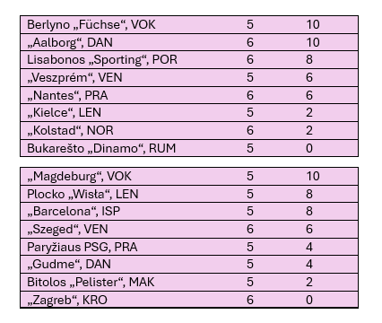 Vienintelėse B grupės rungtynėse „Szeged“ išvykoje įveikė taškų neturintį „Zagreb“ klubą 28:23.