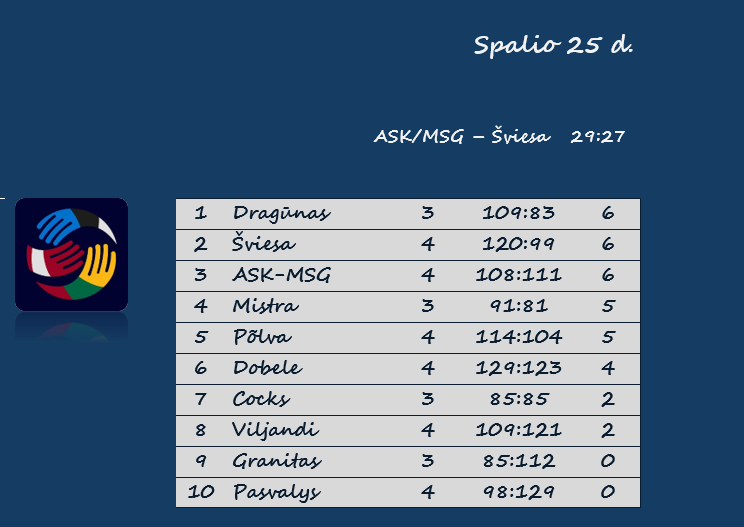 Rygos ASK-MSG – Vilniaus „Šviesa“ 29:27 (14:9).