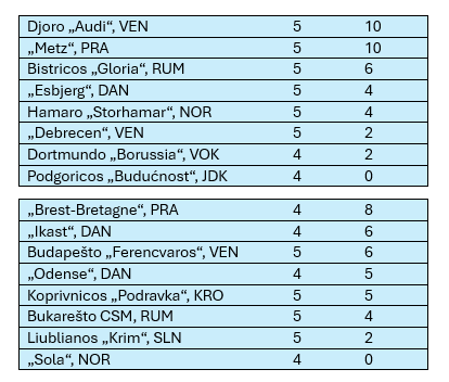 „Gloria“ šį sezoną pralaimėjo tik Djoro „Audi“ bei „Metz“ komandoms ir A grupėje užima trečiąją vietą. Tuo tarpu „Audi“ ir „Metz“ apskritai yra neįveikiamos – šios komandos šeštadienį pasiekė penktąsias pergales ir grupėje dalijasi pirmąją vietą.