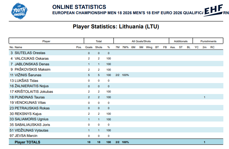Lietuvos vaikinų (iki 18 m.) rinktinė neiškovojo kelialapio į 2026 metų Europos pirmenybes. Karolio Bliuvo treniruojama komanda sekmadienį Klaipėdoje lemiamose atrankos turnyro rungtynėse po labai lygios kovos nusileido Izraelio rinktinei 32:33 (18:17).