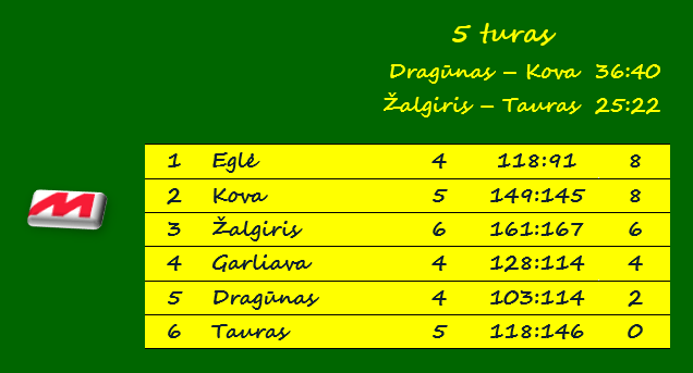 | Praleisti įvarčiai | 22 – Žalgiris (su Tauru) | 19 – Eglė (su Dragūnu) |