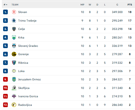 Pirmauja: „Slovan“ – 18, „Trimo“ – 17, „Celje“ – 14, „Krka“ ir „Slovenj Gradec“ – po 13.