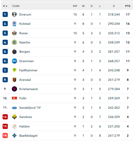 Norvegijos lygos lentelė: