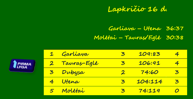 | Skirtumas | 8 – Tauras/Eglė (su Molėtais) | 23 – Garliava (su Molėtais) |