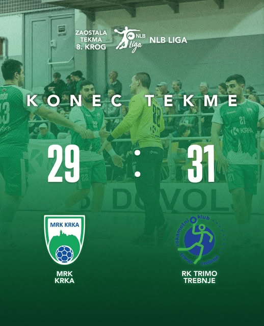 „Krka“ rankininkams nepavyko nuliūdinti lygos lyderės „Trimo“ ekipos. Permainingų rungtynių antrojo kėlinio viduryje „Krka“ pirmavo net keturiais įvarčiais 22:18, bet paskui atsitrenkė į varžovų gynybą ir patyrė trečiąjį iš eilės pralaimėjimą.