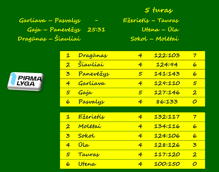 Kitos ketverios šio turo rungtynės bus žaidžiamos sekmadienį, o „Garliavos“ ir Pasvalio „Pieno žvaigždžių“ mačas nukeltas į gruodžio vidurį.