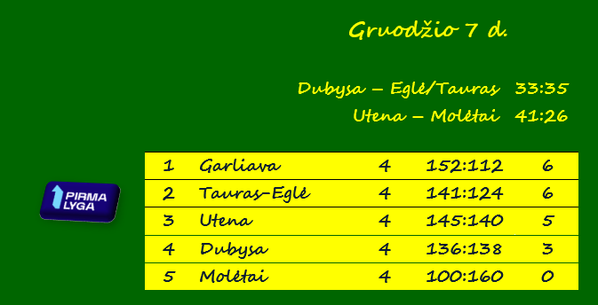 | Įmesti įvarčiai | 41 – Utena (su Molėtais) | 43 – Garliava (su Molėtais) |