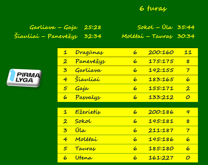 A grupės lyderiais lieka Klaipėdos „Dragūno“ dubleriai, kurie šio turo rungtynes žaidė anksčiau. „Dragūnas“ per 6 turus surinko 11 taškų, „Panevėžys“ turi 8 taškus, „Garliava“ – 7, „Šiauliai“ – 6.
