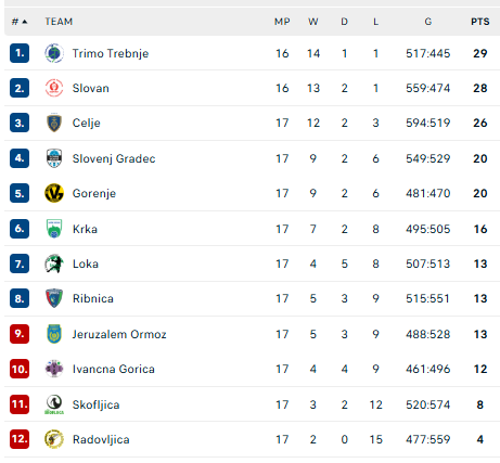 Pirmauja: „Trimo“ – 29, „Slovan“ – 28, „Celje“ – 26, „Slovenj Gradec“, „Gorenje“ – po 20, „Krka“ – 16.