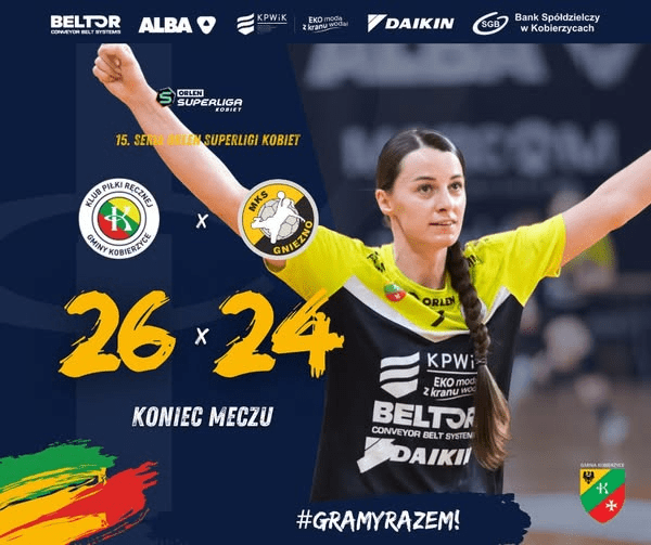 Kobiežicų komanda po lygios kovos įveikė lentelės kaimynes, o Aušra Arciševskaja įmetė du svarbius įvarčius paskutinėmis minutėmis. Po jos taiklių metimų rezultatas tapo 23:22 ir 24:23. Po to „Kobierzyce“ dar labiau padidino skirtumą 26:23 ir iškovojo du taškus.