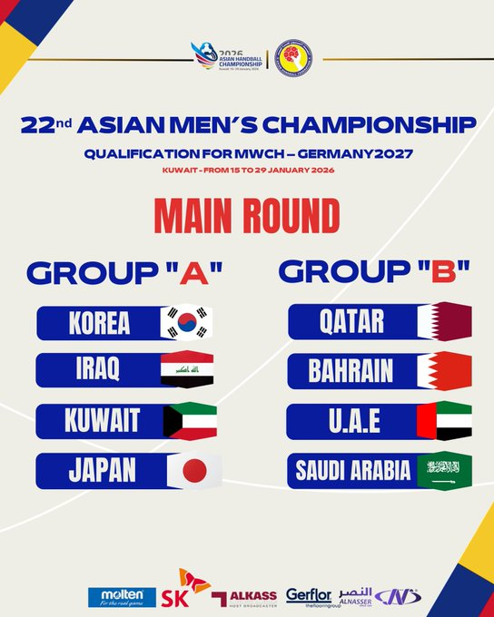 Kuveite vykstančiose Azijos vyrų rankinio pirmenybėse antradienį baigėsi pirmasis etapas. Grupių nugalėtojomis tapo taškų nepraradusios Korėjos, Bahreino, Kuveito ir Saudo Arabijos rinktinės. Į antrąjį etapą taip pat pateko Kataro, Irako, Jungtinių Arabų Emyratų ir Japonijos komandos, kurios grupėse užėmė antrąją vietą.