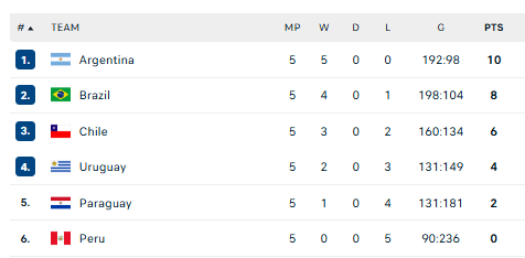 Pietų ir Centrinės Amerikos komandos kovojo dėl keturių kelialapių į 2027 metų pasaulio pirmenybes. Šie kelialapiai buvo įteikti Argentinai, Brazilijai, Čilei ir ketvirtąją vietą užėmusiam Urugvajui. Penktas liko Paragvajus, šešta – Peru.